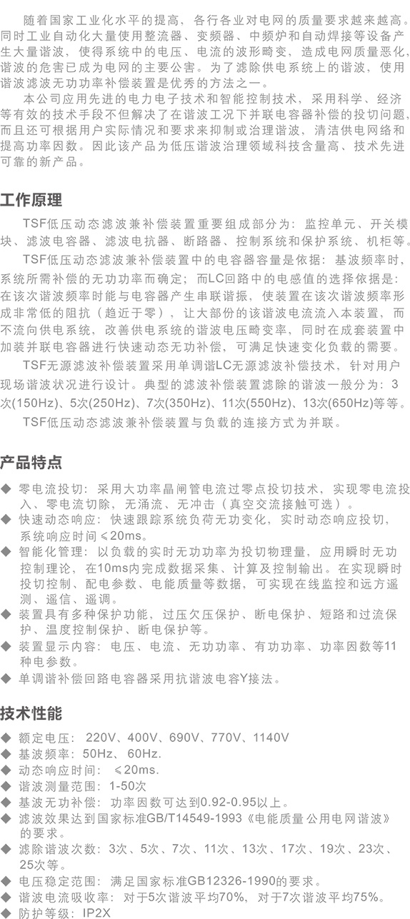 提高功率因數(shù)。因此該產(chǎn)品為低壓諧波治理領(lǐng)域科技含量高、技術(shù)先進